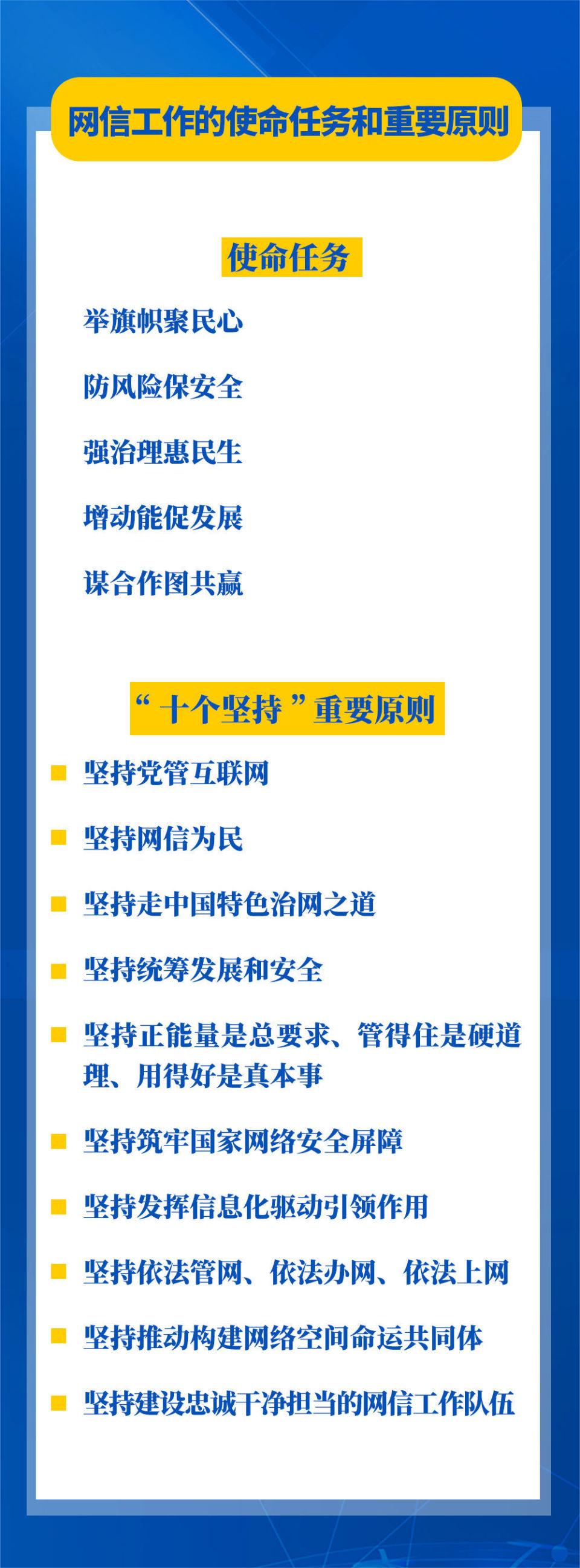 習(xí)近平總書(shū)記鮮明提出的網(wǎng)信工作“5個(gè)方面、30個(gè)字”的使命任務(wù),涵蓋互聯(lián)網(wǎng)內(nèi)容建設(shè)、網(wǎng)絡(luò)安全、網(wǎng)絡(luò)惠民、信息化建設(shè)、國(guó)際網(wǎng)絡(luò)空間治理等,“十個(gè)堅(jiān)持”重要原則進(jìn)一步豐富和發(fā)展了習(xí)近平總書(shū)記關(guān)于網(wǎng)絡(luò)強(qiáng)國(guó)的重要思想,把黨對(duì)網(wǎng)信工作的規(guī)律性認(rèn)識(shí)提升到全新高度??倳?shū)記提出的使命任務(wù)和重要原則,具有很強(qiáng)的政治性、戰(zhàn)略性、指導(dǎo)性,既著眼當(dāng)前,又謀深慮遠(yuǎn),為做好新時(shí)代新征程網(wǎng)信工作指明了前進(jìn)方向,為推進(jìn)實(shí)現(xiàn)網(wǎng)絡(luò)強(qiáng)國(guó)提供了根本遵循。