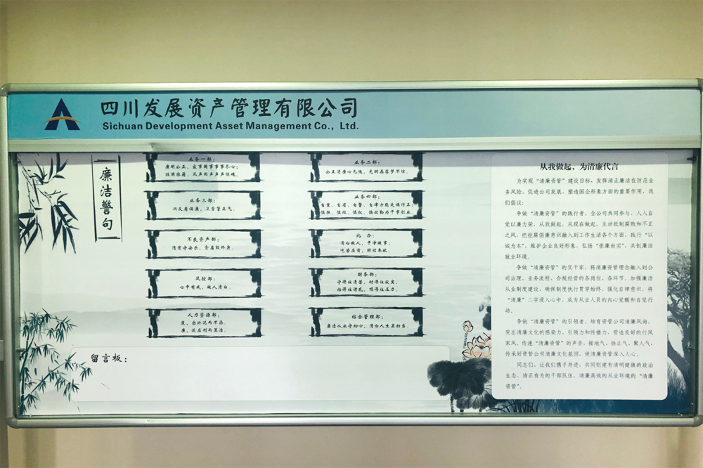 會上,首先由公司黨支部紀(jì)檢委員張勇集中展示了向各部門征集的廉潔警句,并宣讀了“從我做起,為清廉代言”的清廉倡議書。為了實現(xiàn)“清廉資管”建設(shè)目標(biāo),倡議全體員工要爭做“清廉資管”的踐行者、實干家和引領(lǐng)者,共同創(chuàng)造有清明健康的政治生態(tài)、清正有為的干部隊伍、清廉高效的從業(yè)環(huán)境的“清廉資管”。
